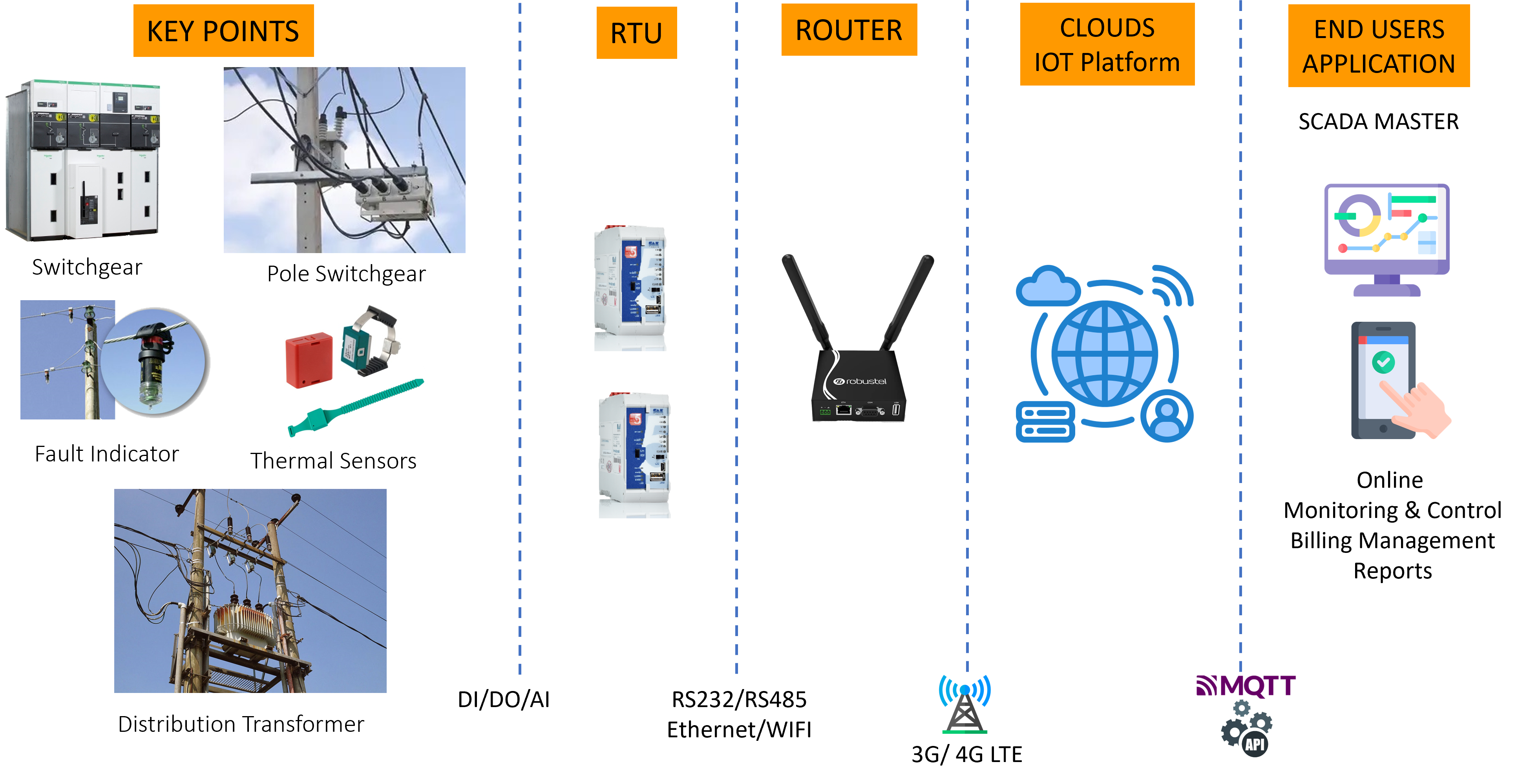 To provide installation of Remote Terminal unit (RTU) and modem routers in key points : indoor and Pole mounting switchgears, MV/LV panels, Fault indicators, Thermal and Humidity Sensors (Early warning system) and Distribution Transformer Online Monitoring (Online losses Monitoring)
